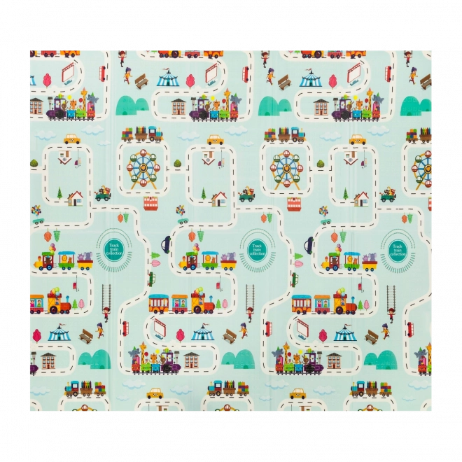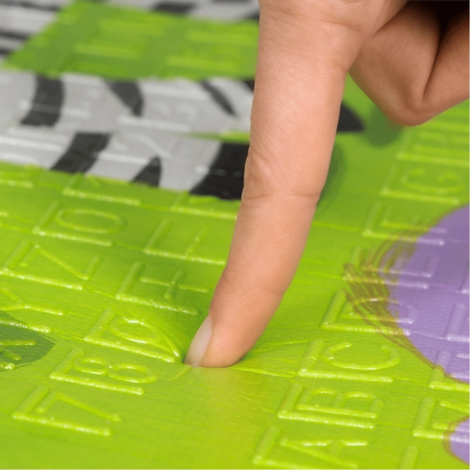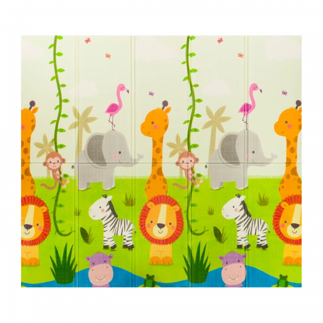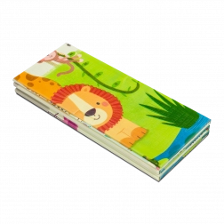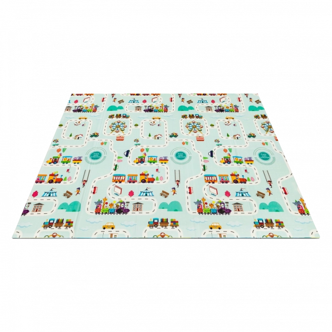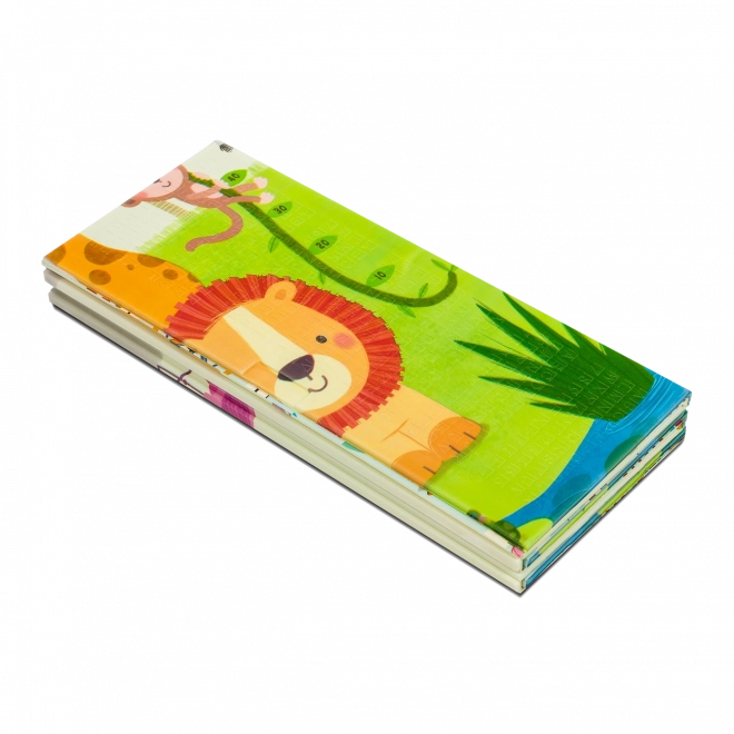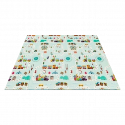 Ét underlag, dobbelt så sjovt. Farverige safaridyr og et interaktivt bykort inspirerer til historiefortælling og udvikler fantasien.