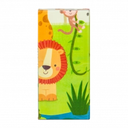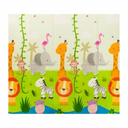 Legeunderlaget Lionelo Robby tilbyder et generøst område på 180 × 200 × 1 cm til sikker leg for både småbørn og større børn. Det dobbeltsidede print stimulerer fantasien – på den ene side dyr fra Safari, på den anden et bykort til legebiler og historier fra gaderne. Takket være det robuste XPE-skum dæmper underlaget stød, samtidig med at det er tilstrækkeligt fast til de første forsøg på at rejse sig og kravle.