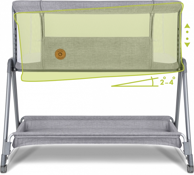 Madrassen af kvalitetsskum giver korrekt støtte til den voksende rygsøjle. Den praktiske hældningsmulighed hjælper ved forkølelse og refluks. Sengens højde tilpasses i 7 trin, så den flugter med forældrenes seng. Med fastgørelsesstropper forbinder du sidebeden hurtigt og sikkert med voksensengen. Aftagelige tekstiler, inklusive madrasbetræk, kan let tages af og vaskes, så sovemiljøet forbliver hygiejnisk.