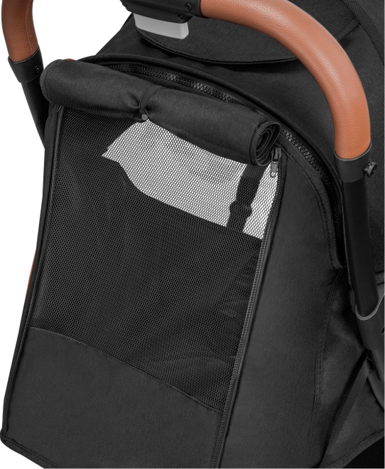 For maksimal komfort til barnet har den glidende, multitrins justering af ryglænet via et drejehjul, justerbar fodstøtte og en multitrins kaleche med netpanel for bedre luftcirkulation. Forældre vil sætte pris på den aftagelige bøjle, håndtag i øko-læder, den store kurv og det rige tilbehør.