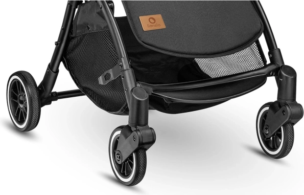LIONELO Julie One kombinerer elegant design med praktiske detaljer til daglig brug. Takket være den lette aluminiumsramme og de kompakte mål er den nem at bære og opbevare, samtidig som den håndterer en belastning på op til 22 kg. Affjedrede hjul af gummi og polyurethan sikrer jævn kørsel på både fortov og brosten.