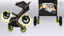 Klapvognen Lionelo Cloe er det ideelle valg for forældre, der søger en kompakt, let og letmanøvrerbar klapvogn uden kompromiser på komfort og sikkerhed. Takket være de store EVA skumhjul med PU-dæmpere klarer den ujævnheder, mens de drejelige forhjul 360° giver smidig manøvrering i byen.