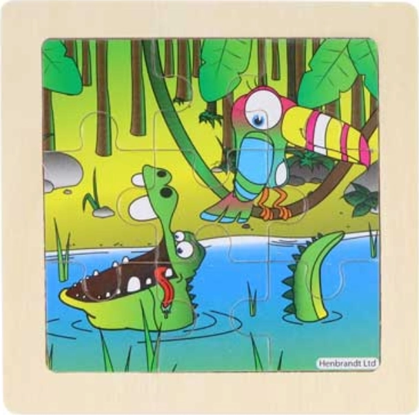Dette kvalitets-træpuslespil med junglemotiv er et ideelt første puslespil til små børn. Den fræsede kant i bundpladen hjælper brikkerne med at falde på plads, så barnet kan fokusere på glæden ved at lægge puslespil. Illustrationerne med glade små aber understøtter farve- og formopfattelse.
