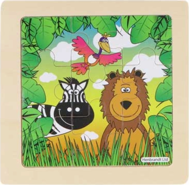 Sødt træpuslespil med junglemotiv og små aber, der glæder de mindste. Takket være 9 robuste brikker og en træbundplade med fræset kant er puslespillet let at lægge og udvikler finmotorik, logik og fantasi samtidig.