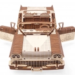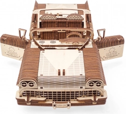 Modellen glæder også med mange løst opbevarede detaljer – bag de bageste skærme finder du en værktøjskuffert og donkraft, funktionelle viskere, udtrækkelige ruder i dørene og nedklappelige bagsæder. Affjedrede hjulophæng sikrer realistisk kørsel. Sættet er fremstillet af kvalitets-krydsfiner og leveres med en detaljeret vejledning.