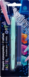 Denne pastelfarvede viskelær-pen er udstyret med en blå udskiftbar patron, og i pakken finder du desuden 2 reservepatroner for længere holdbarhed. Stregbredden på 0,6 mm er ideel til daglige noter, skolehæfter og planlæggere.