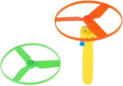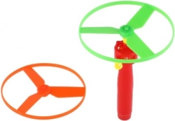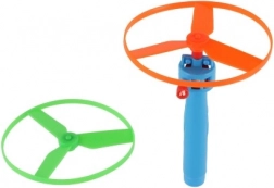 Den robuste udførelse i plast tåler børns leg, og mekanisk drift uden batterier sparer både penge og miljø. De to farvede propeller i pakken gør det muligt at skifte og konkurrere om, hvem der affyrer højest eller længst. Et fantastisk legetøj til udendørs brug til både solo- og fællesleg.