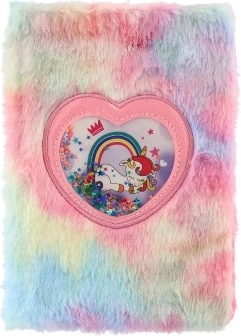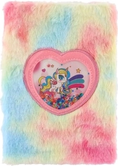 Nyd at skrive og skabe med denne stilfulde notesbog i plysset regnbuedesign. Den bløde overflade er behagelig at røre ved, og det hjerteformede vindue med pailletter og enhjørning giver omslaget et legende, magisk udtryk. Notesbogen er perfekt til skole, fritid og som personlig dagbog.