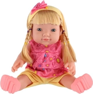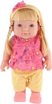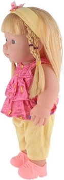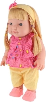 Denne realistiske dukke på 30 cm er et godt valg til at udvikle fantasi og sociale færdigheder. Den har en solid plastkrop, langt hår der kan friseres og er klædt i glade, farverige outfits. Den indbyggede lydmodul aktiveres, når sikringen i mekanismen på ryggen trækkes ud.