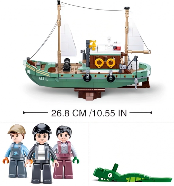 Byggesættet leveres med tre figurer, en trykt vejledning og klistermærker til personalisering af din båd. Den sammensatte båd Ellie måler imponerende 27 cm og er klar til ethvert eventyr. Takket være den høje kvalitet af ABS-plast er byggesættene holdbare og langvarige. De er også kompatible med andre mærker som LEGO, Mega Bloks og flere.