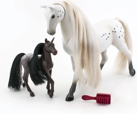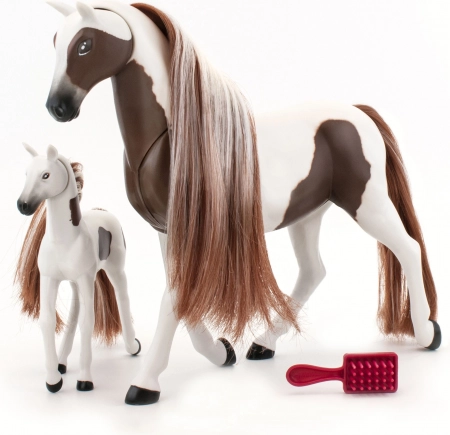 Oplev den magiske relation mellem en hoppe og hendes føl med dette yndige sæt. Pakken indeholder æble, gulerod og en børste til at rede deres smukke manke ud.