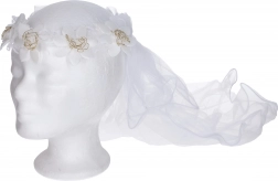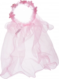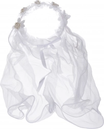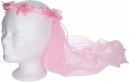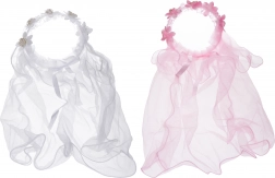 Dette stilfulde pandebånd med slør forvandler hurtigt en lille prinsesse, fe eller brud. Den fine, gennemsigtige tyl bølger smukt, og blomsterdetaljerne giver tilbehøret et romantisk udtryk. Takket være det lette materiale og den elastiske fastgørelse er det behageligt at have på hele dagen.