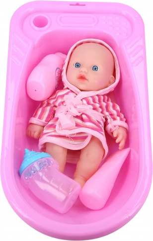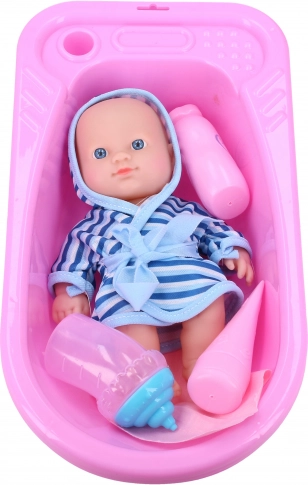 Dette fantastiske badesæt med en sød dukke er ideelt til børn, der elsker at pleje deres legetøj. Sættet indeholder alt nødvendigt til at bade dukken: