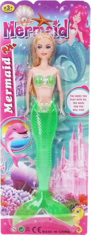 Dette søde lille havfrue er en ideel ledsager til børns lege og aften-eventyr. Takket være lyseffekterne, der aktiveres med en switch på ryggen, vil den livliggøre enhver legeplads.