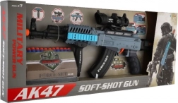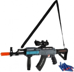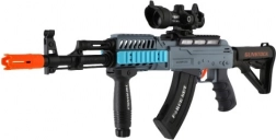 Maskinpistolen har et realistisk look inspireret af moderne rifler, ergonomisk greb og aftageligt magasin. Kombinationen af holdbar plast og lav vægt er perfekt til mindre børn.
