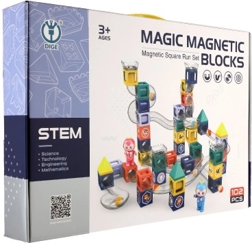 Dette farverige magnetiske byggesæt kombinerer leg og læring. Takket være de stærke magnetiske samlinger kan man let bygge stabile konstruktioner og skabe varierede kuglebaner. Børn træner rumlig forståelse, tålmodighed og planlægning – og de elsker både at bygge og at følge kuglernes tur.
