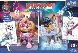 Puslespil Maxi 2x10 indeholder to store samlinger opdelt i 10 store brikker, hvilket er ideelt for børn fra 2 år. Hver samling er tosidet - på den ene side er der et farverigt billede af yndlingshelte fra den animerede serie Paw Patrol, og på den anden side er der en stor malebog.