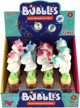 Enhjørningefiguren på låget forvandler en almindelig sæbeboblepuster til et hit. Legende detaljer og farver fanger opmærksomheden med det samme.
