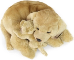 Denne ultrabløde plyslabrador på 27 cm hygger med sin 13 cm hvalp og danner et dejligt makkerpar til både leg og sengetid. Det realistiske udtryk, den bløde pels og det omhyggelige håndarbejde gør den til en ideel gave til dyreelskere og små børn.