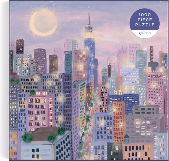 Puslespil Byens lys af Joy Laforme tager dig med til et natteligt bymiljø badet i blidt lavendellys. Dette unikke design er en fantastisk gave til enhver puslespilsentusiast.