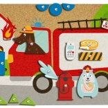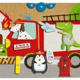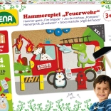 Dette underholdende bankespil fra Lena giver uendelige timer med kreativ leg. Med en hammer, farvede dele og en korkplade kan du skabe forskellige brandmands-scenarier.