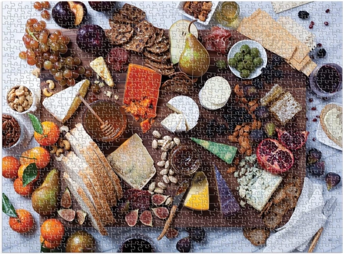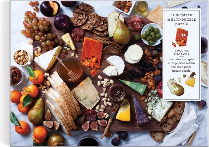 Premium puslespil med 1000 brikker med motiv af oste-bræt, mat finish, 5 minipuslespil og FSC-materialer. Smuk gave og afslapning for design- og madentusiaster.