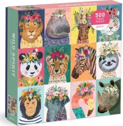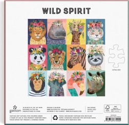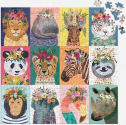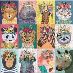 Nyd at lægge puslespillet "Vilde sjæle" med et legende design af 12 dyrehoveder pyntet med blomster. Ideel gave til enhver puslespilsentusiast.