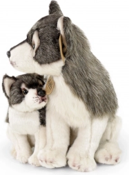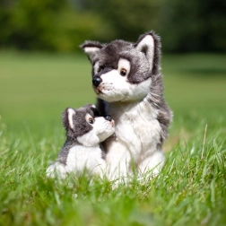 Den siddende ulv med unge fra Rappa er lavet af en eksklusiv, silkeblød plys, der indbyder til kram. Fyldet består af genanvendte PET-flasker, så du får den gode følelse af leg, der er skånsom mod naturen. Unge og voksenulv er kun forbundet med en tråd – du kan derfor nemt skille dem ad og få to separate legetøj.