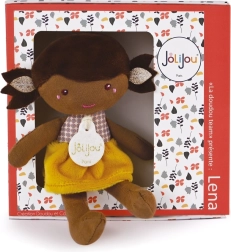 Den lille dukke Léna 16 cm er en fantastisk første ven for babyer og tumlinger. Den er blød at røre ved, sikker takket være broderede detaljer og indbyder til både kram og leg. Den kompakte størrelse fremmer greb og udvikling af finmotorikken.