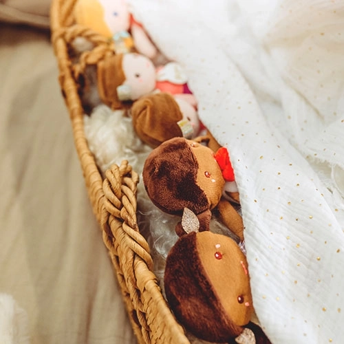 Dukken har et behageligt bomuldsansigt, en blød tekstilkrop og et smukt sæt tøj i varme farver. Den er nem at vedligeholde – kan vaskes ved 30 °C og tørres naturligt eller ved lav temperatur. Leveres i en åben gaveæske, klar til at blive givet som gave.