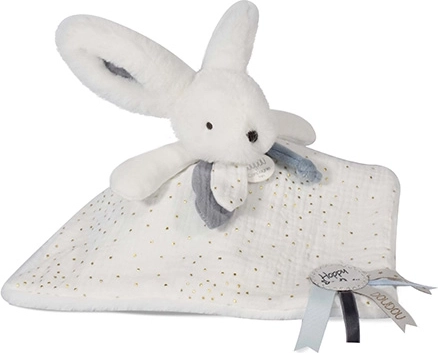 Denne plyskanin er smukt designet og udsmykket med fint afstemte bånd, hvilket giver den et strejf af modernitet og luksus. Præsenteret i en smuk gaveæske, udgør den en ideel gave til nyfødte.