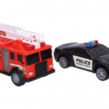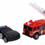 Politibil og brandbil med effekter, der imponerer med lys- og lydeffekter. Bare tryk på knappen, og sjoven kan begynde!