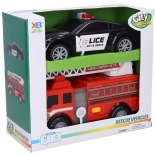Dette sæt med en politibil og en brandbil vil begejstre ethvert barn. Perfekt til alle, der elsker action og eventyr. Begge biler har friløbshjul, hvilket gør dem lette at styre og hurtige at køre.