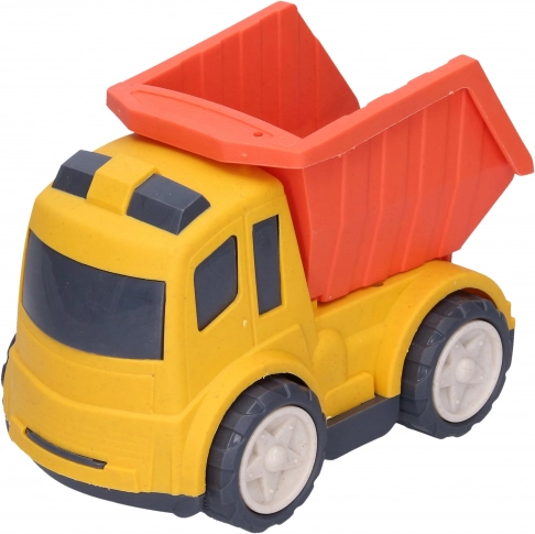 Opdag sjove byggemaskiner til børn på 17 cm med friløbende hjul. Der findes 4 byggemodeller (gravemaskine, kran, betonblander, tipvogn) og 2 farvevarianter – blå og rød.