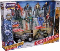 Udvid din samling af actionhelte med The Corps – et komplet sæt med 8 soldaterfigurer og fedt udstyr til actionfyldte scenarier. Detaljeret udførelse, bevægelige lemmer og to terrængående køretøjer gør det muligt for børn at skabe deres egne historier og taktiske operationer.