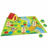 - rumlig spilleplade, 3 træfigurer, stor træterning, 16 blåbærjetoner, regler