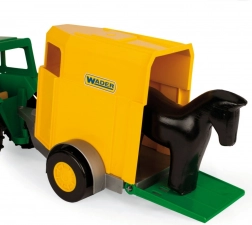Traktor med hestetrailer Color Cars er et fantastisk legetøj til små landmænd. Takket være kvalitetsplast, som er modstandsdygtig over for vejret, er den ideel til hjemmet, haven, sandkassen og stranden. Børn lærer nemt principperne for transport af dyr og kan lege mange forskellige scenarier.