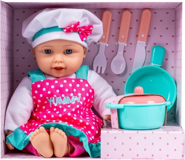 Dukke kokken Julka bringer ikke kun glæde ved madlavning, men lærer også børn grundlæggende om sund ernæring. Ved at trykke på knappen på maven kan dukken: