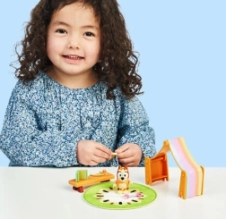Tag på nye eventyr derhjemme med BLUEY og hendes søster Bingo. Mini-sættet “Legeværelse” er designet til små børn, der elsker at omsætte seriens historier til deres egne lege. De farverige tilbehør og detaljerede figurer stimulerer fantasien og udvikler sociale færdigheder.