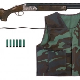 Gonher haglgevær sæt med vest, ideel til små jægere. Haglgeværet er lavet af holdbar plast og metal, med mulighed for at indsætte kapsler for mere realistiske lydeffekter.