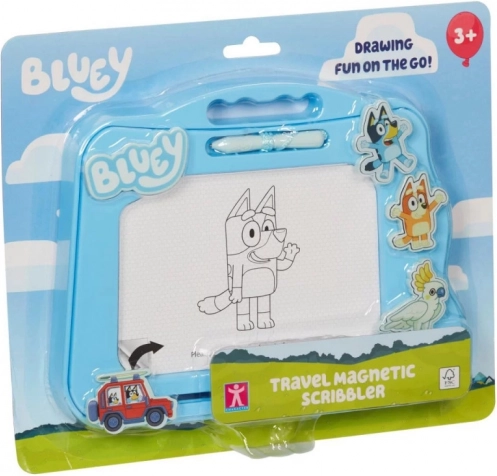 Bring denne glæde og kreativitet hjem med Blueys magiske tegnetavle! Med dette legetøj kan I tilbringe mange lykkelige timer med at tegne og male. Tavlen er let og magnetisk. Sættet indeholder en magnetisk pen og 3 stempler, så I kan tegne jeres yndlingsfigurer fra Bluey.