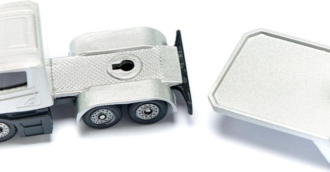 Unikær trailer fremstillet af metal- og plastdele, designet til transport af SIKU politiets helikopter.