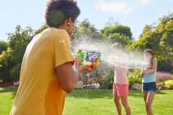 Den store kapacitet på 700 ml mindsker behovet for hyppig genopfyldning, og pump-action affyrer en jævn vandstråle helt op til 9 meter. Ideel til haven, parken og ved poolen – sjov for hele familien.