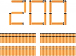 - Sættet indeholder 200 X-Shot Excel Ammo pile, kompatible med de fleste pistoler fra førende mærker. Der medfølger også en transportbox til pile med håndtag.