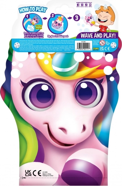 Hver enhed indeholder en handske og en pose med boblevæske i en praktisk genlukkelig emballage, så I kan lege hvor som helst og når som helst.