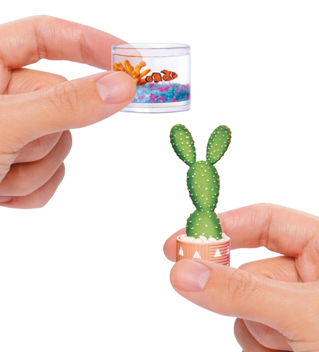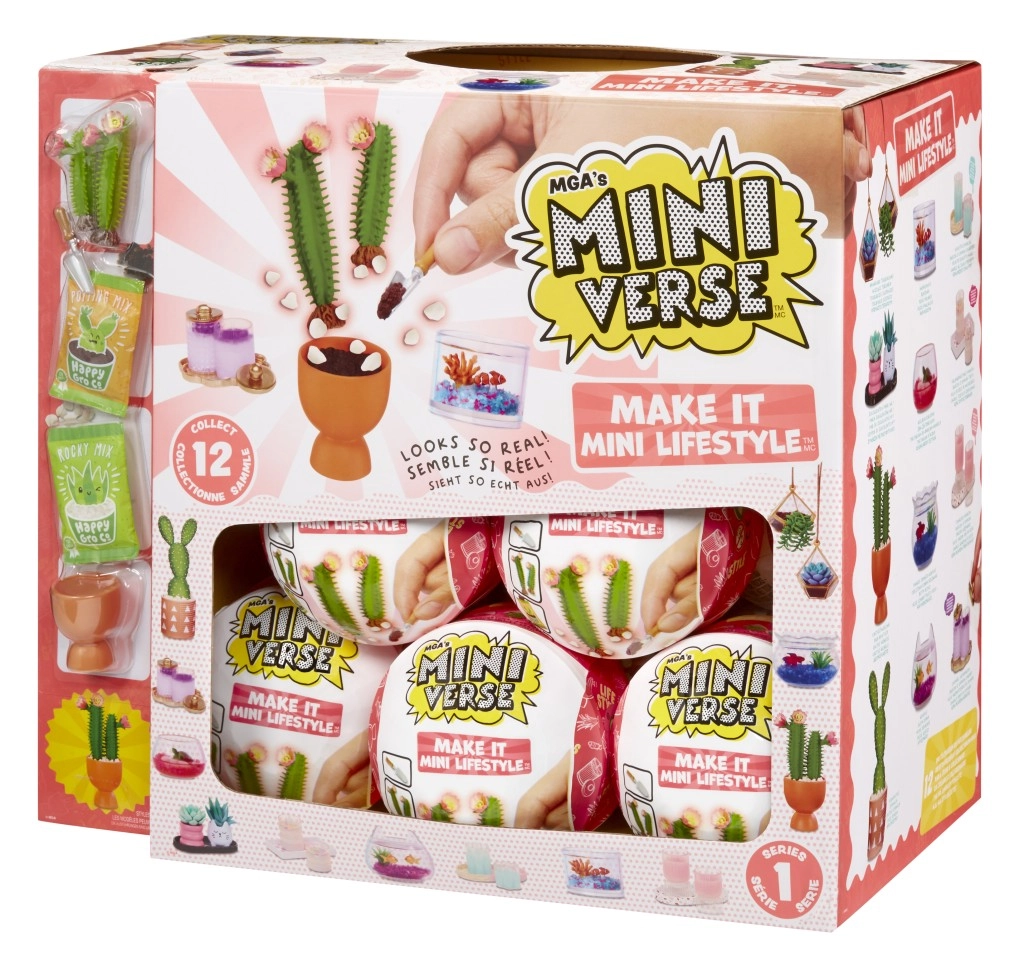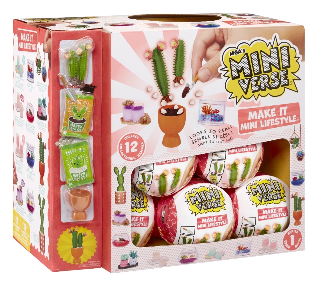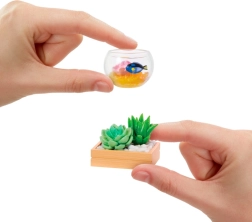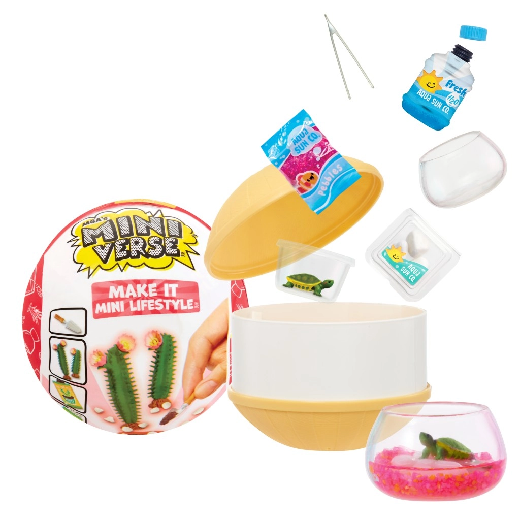 Oplev miniaturernes verden med MGA's Mini Verse Make It Mini Lifestyle! Hver kugle gemmer på en overraskelse og giver dig alt, hvad du behøver for at skabe realistiske mini-dekorationer – fra miniakvarier med små fisk til mini-kaktusser med jordposer. Når du har samlet det, skal du blot lade det hærde i UV-lys, så har du et færdigt samlerstykke klar til udstilling.