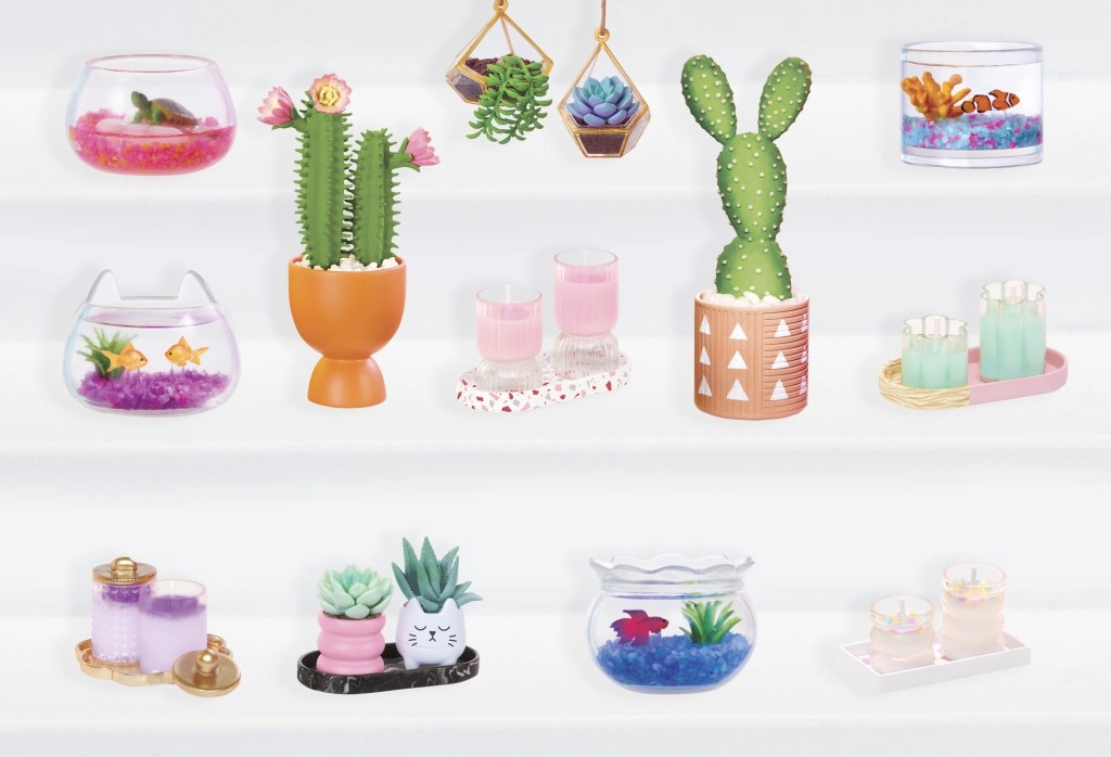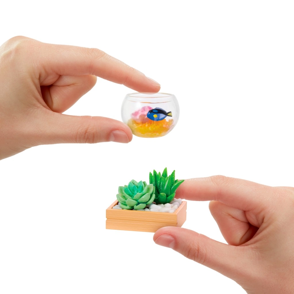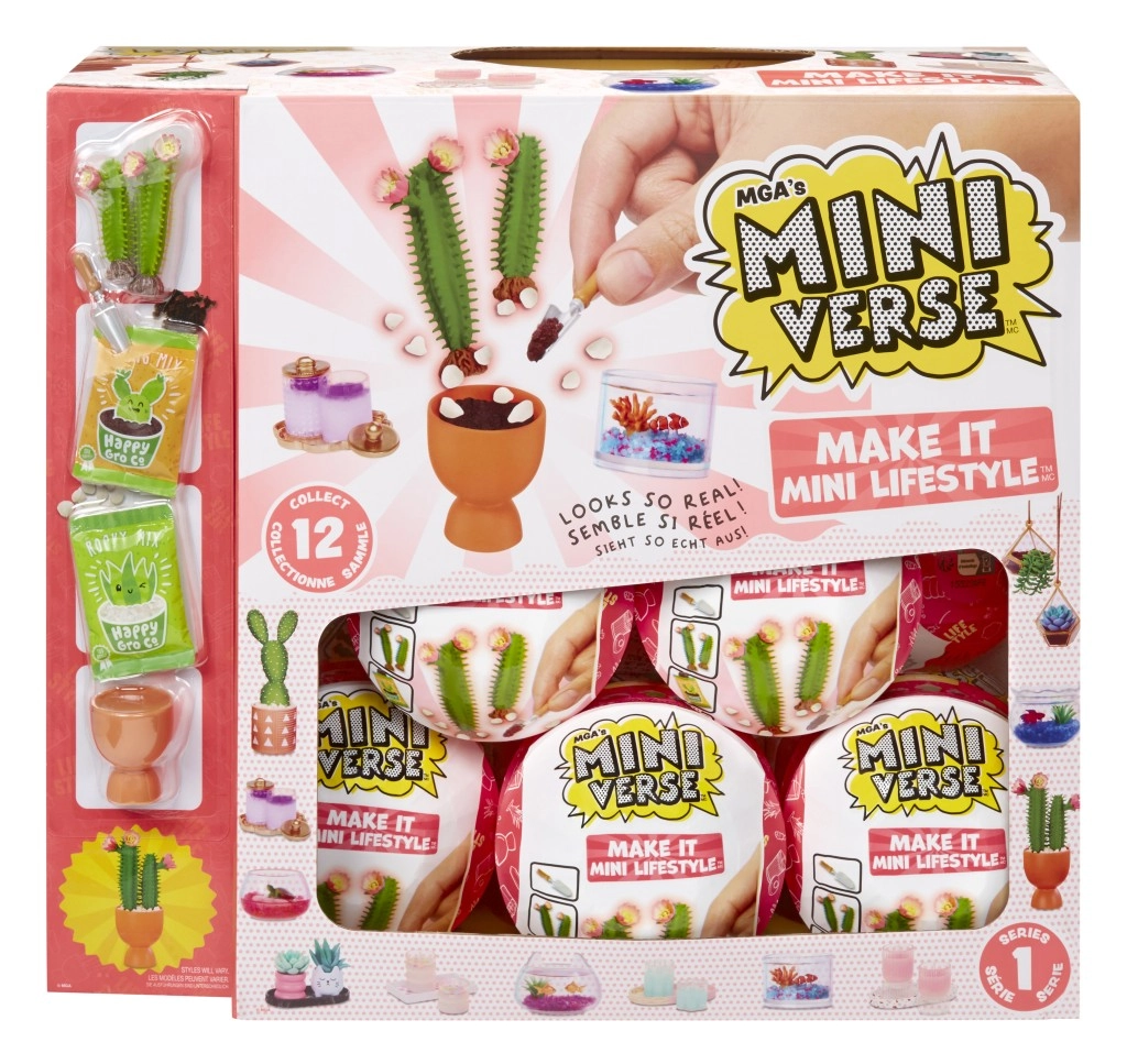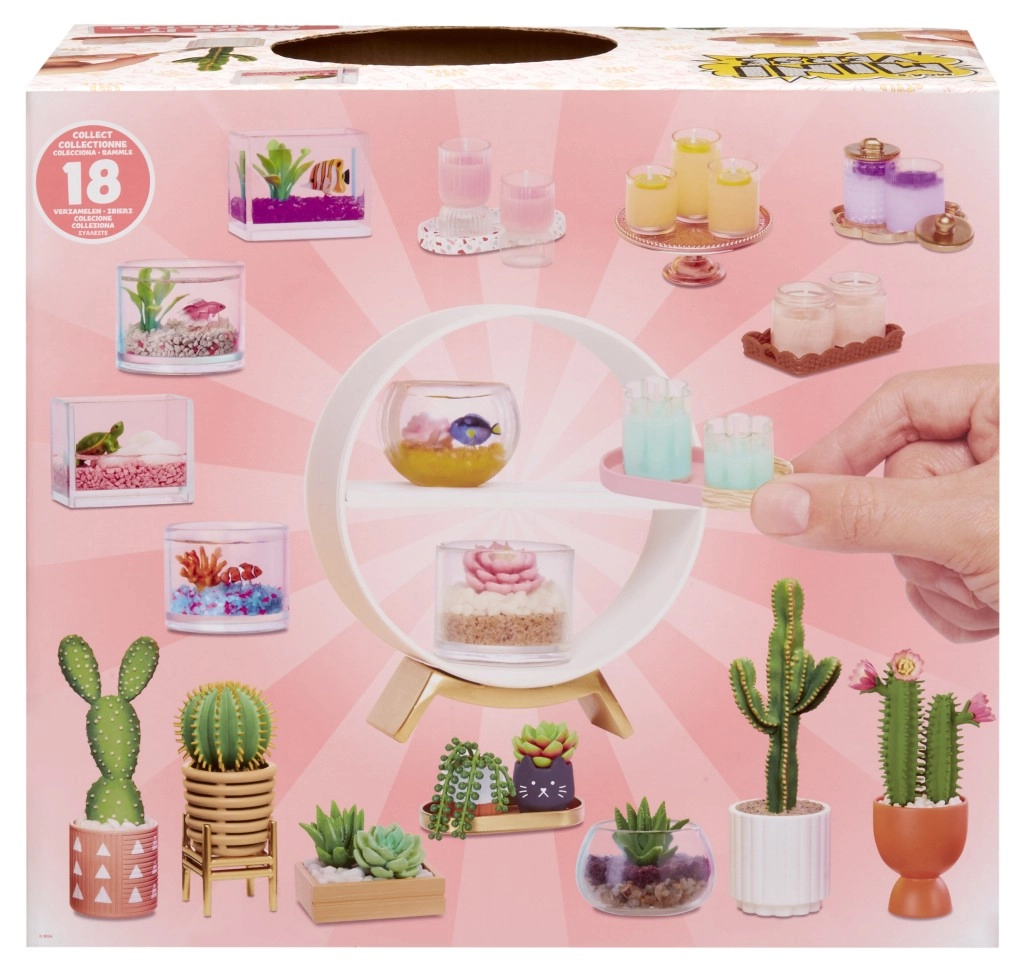 Oplev miniaturernes verden med MGA's Mini Verse Make It Mini Lifestyle! Hver kugle gemmer på en overraskelse og giver dig alt, hvad du behøver for at skabe realistiske mini-dekorationer – fra miniakvarier med små fisk til mini-kaktusser med jordposer. Når du har samlet det, skal du blot lade det hærde i UV-lys, så har du et færdigt samlerstykke klar til udstilling.