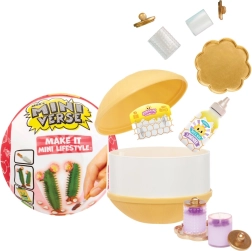 MGA's Mini Verse – Make It Mini Lifestyle er en kreativ og samlevenlig serie, hvor du skaber dine egne miniaturedekorationer til et “mini-hjem”. I pakken finder du autentisk udformede materialer, emballager og tilbehør – i alt over 60 unikke dele i Series 1. Hver pakke er et mystery, så spændingen ved unboxing er garanteret.