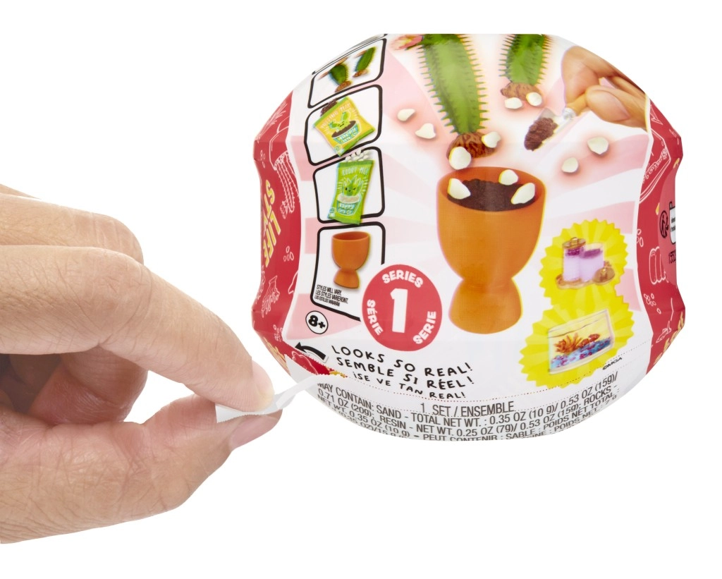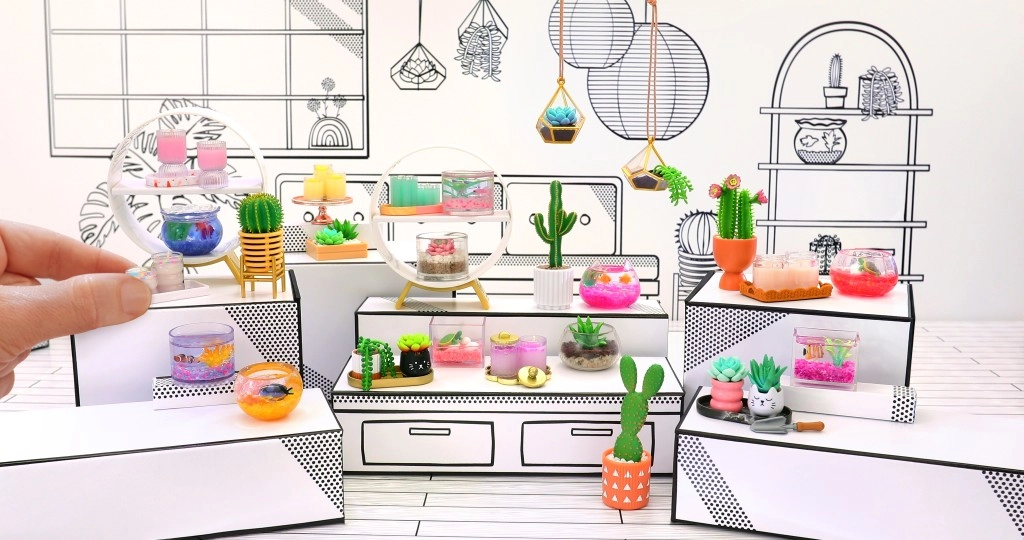 Hver kugle er et mystery – først ved udpakning finder du ud af, om du får et miniakvarium, en kaktus, et terrarium eller andre stilfulde accessories.