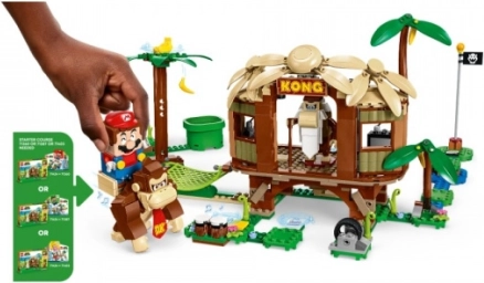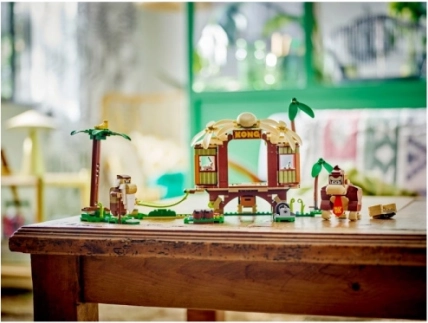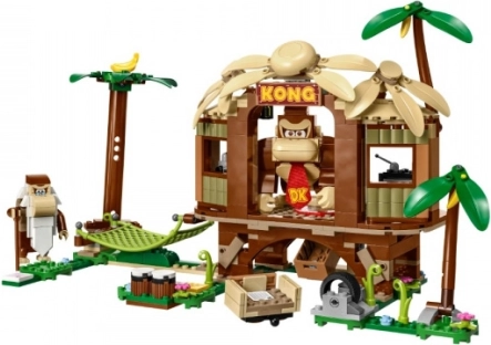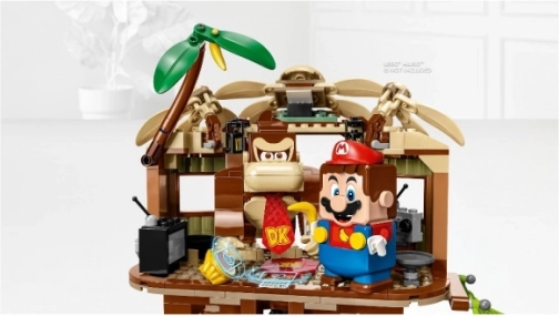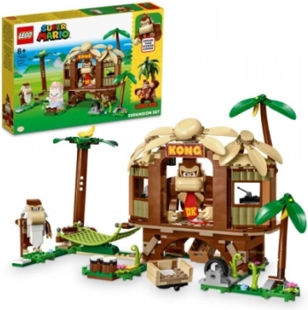 Udforsk det ikoniske junglemiljø med DONKEY KONG og nyd sjov fyldt med venskab og belønninger. Træhytten er spækket med detaljer: byggbar TV og radio, hemmeligt skjul, hængekøje, trommer og en bananpalme. Takket være kompatibiliteten med de interaktive LEGO Super Mario-figurer (medfølger ikke) får du spiludfordringer og kan samle digitale mønter.